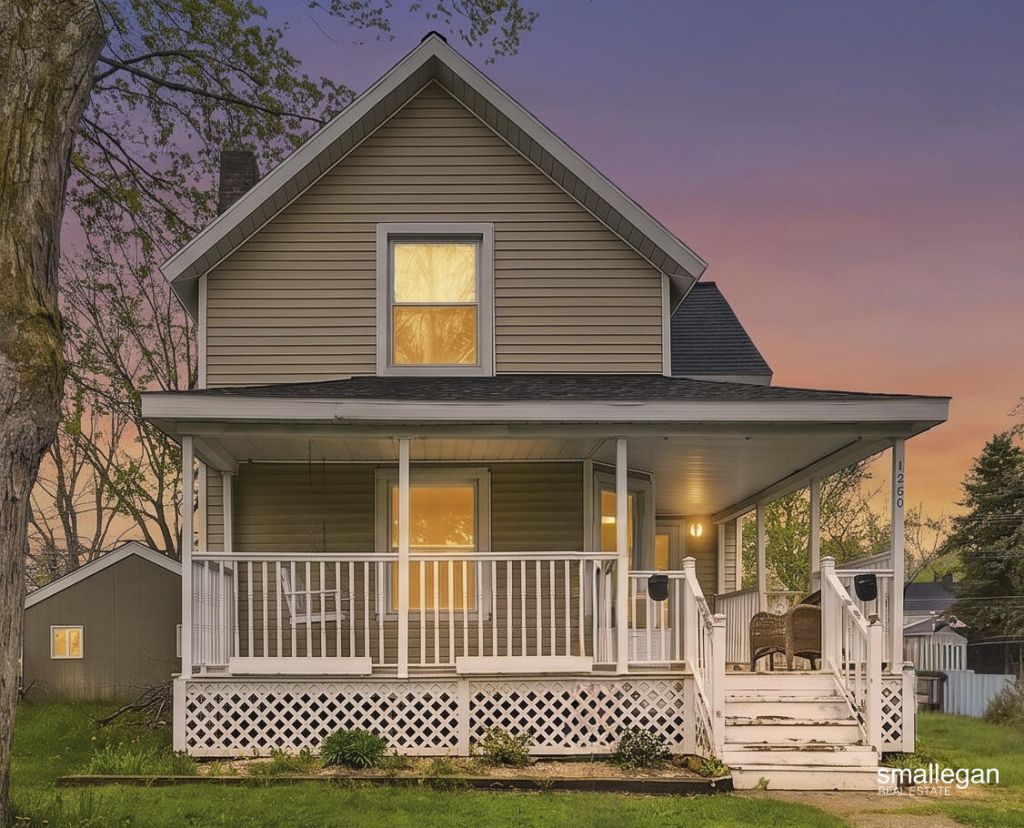 Welcome to this charming 3 bedroom, 1.5 bath home in the heart of downtown Lake Odessa, offering convenient access to Grand Rapids and all of West Michigan. This well maintained property blends classic character with practical updates, making it a great option for anyone buying a home or investing in the area.The main floor features a bright kitchen with ample cabinet space, opening to a spacious dining area filled with natural light. The living room provides a comfortable setting for everyday living or entertaining, while a main floor bedroom offers flexibility for guests, an office, or playroom.Upstairs includes two generously sized bedrooms, a half bath, and convenient second floor laundry. The full bathroom is updated with clean, modern finishes.Enjoy the covered front porch or relax on the back deck overlooking a large yard, perfect for outdoor gatherings. Located near local shops, parks, and schools, this home is a great opportunity in the Lake Odessa market.