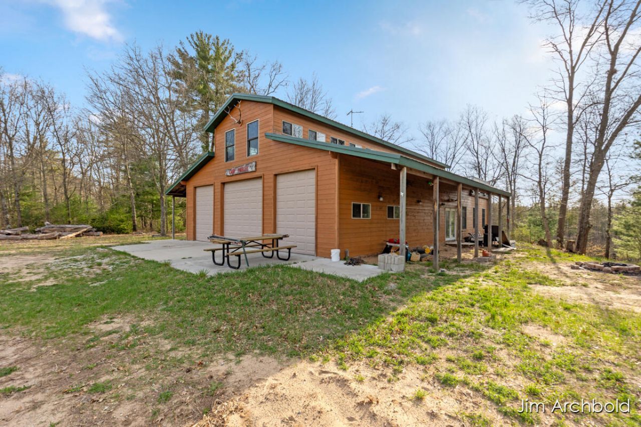 Discover a level of freedom, privacy, and possibility rarely found in West Michigan, welcome to more than 74 acres of pure, breathtaking potential. Tucked deep within a serene woodland backdrop, this extraordinary property offers unmatched tranquility, abundant wildlife, and the kind of space that lets your dreams take shape. At the heart of the land sits a partially finished Barndominium, already framed for your vision. The massive four-stall garage opens into a sprawling main-floor great room warmed by a wood-burning stove, along with a full bath and two additional rooms ready for whatever you imagine, office, bunk rooms, studio, gear space, you name it. Upstairs is roughed-in for two bedrooms, a full bath, kitchen, and living room. The exterior is beautifully finished with natural wood siding, round-top windows, a steel roof, covered outdoor areas, and an elevated deck that feels like a front-row seat to natures theater. Step outside and the magic continues: acres of yard space, with fruit trees, and a large stable ideal for horses, livestock, or equipment. The land itself is a outdoor lovers paradise, alive with deer, rabbit, pheasant, duck, geese, and more, crisscrossed by streams, ponds, game trails, and featuring several hundred feet of frontage on the White River. It is also mere minutes from snowmobile trails. This is where stories are made, traditions are born, and legends are passed down. If youve been waiting for land that gives you space to breathe, build, explore, and live on your own terms--youll want to see this one in person.