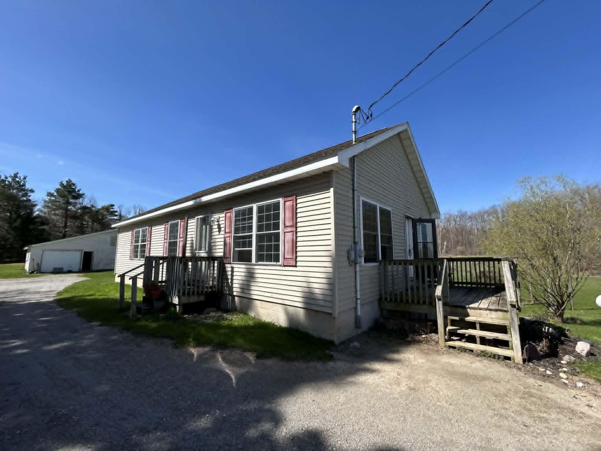Escape to the peace and privacy of country living with this beautiful 3-bedroom, 2-bath home offering 2,400 square feet of living space, set on 2.5 scenic acres. This inviting property features a walk-out basement and an abundance of large windows that fill the home with natural light while showcasing the stunning surrounding views.The land is thoughtfully landscaped and includes a variety of mature fruit trees, perfect for enjoying fresh harvests right from your own yard. A garden shed provides extra storage for tools and outdoor equipment, while the impressive three-bay, two-story outbuilding offers endless possibilities--ideal for a workshop, storage, or hobby space.