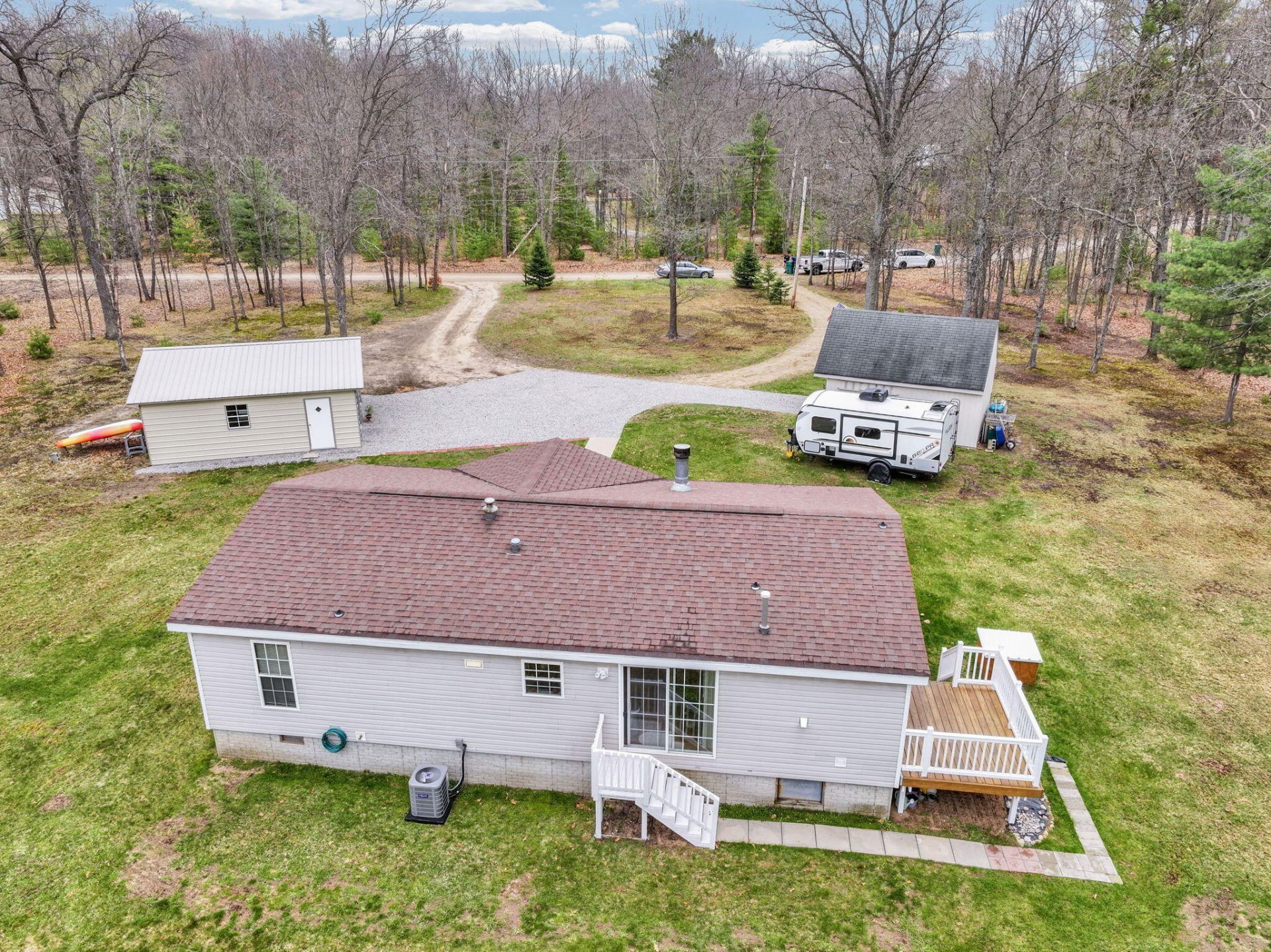 Privacy, water, and lake access-this is the kind of property buyers wait for. Set on 12 acres with 400 on Knappen Creek, this well-maintained 3-bedroom, 2-bath home offers a rare combination of space, nature, and usability--plus mooring rights and a clubhouse on Houghton Lake through Deer Run Association, giving you full lake access without the waterfront price. Unlike many homes in this price range, the major updates are already done: New 2-car garage (2025), New central A/C (2025) and Natural gas for efficiency and comfort. Inside offers a practical, easy-living layout. Outside is where this generous property, set on a private road, separates from the competition-mature woods, privacy, wildlife, and room to expand, hunt, or ride. Dont miss out on this one!