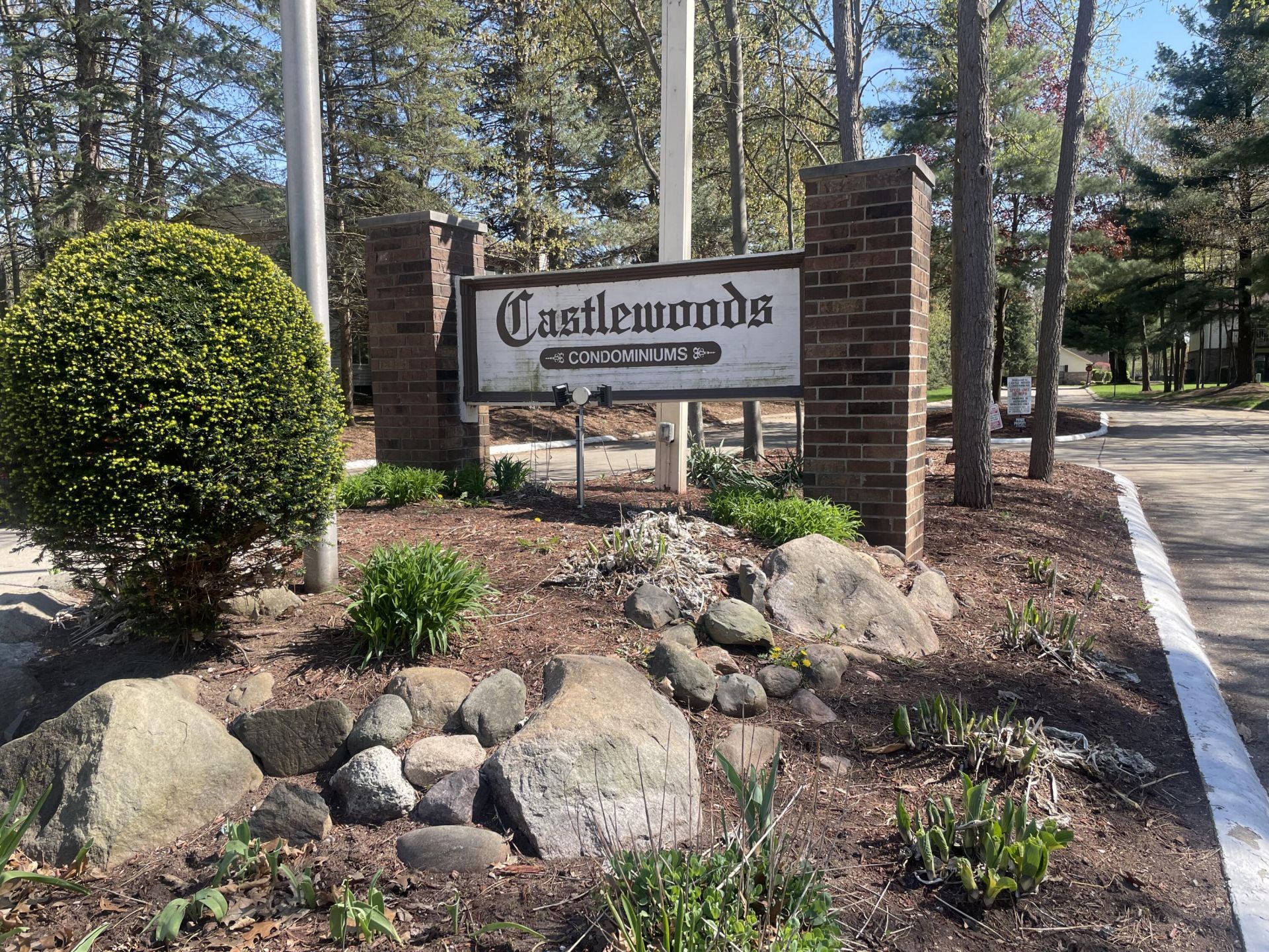Just move in and enjoy this beautiful 2 bedroom, two bath ground level condo with a private entrance. The open foyer takes you into the living area with a door wall to your covered patio overlooking the park like common area. There have been about $17,000 in updates since 2024. The updated kitchen with new flooring, granite countertops, new range and refrigerator has an open view to the dining/living area. The two bathrooms have updated granite countertops.There is new flooring throughout the living areas.Other updates include light fixtures and painting.The detached garage with remote entrance is in front of the condo. The complex also includes a club house and pool.