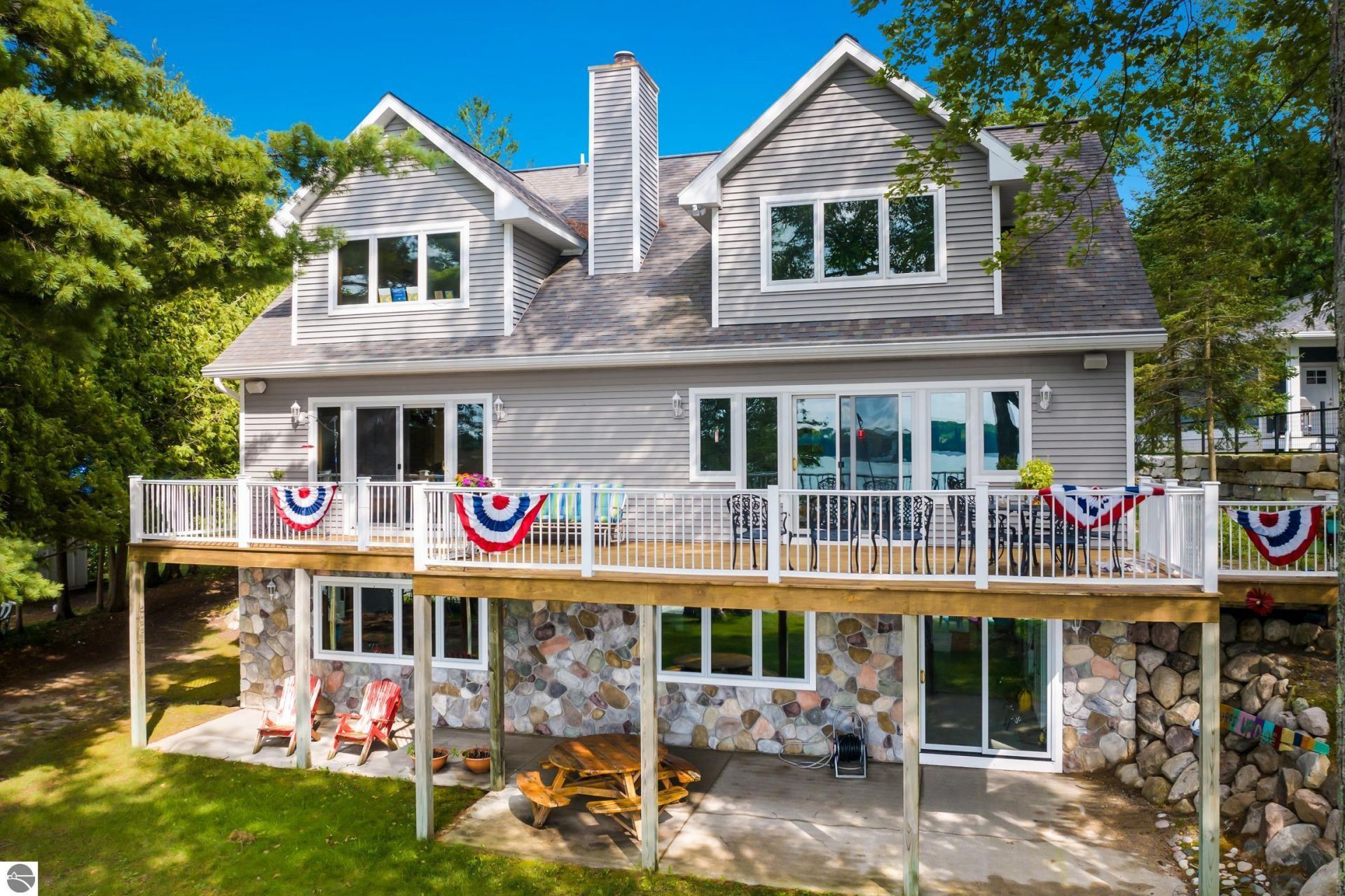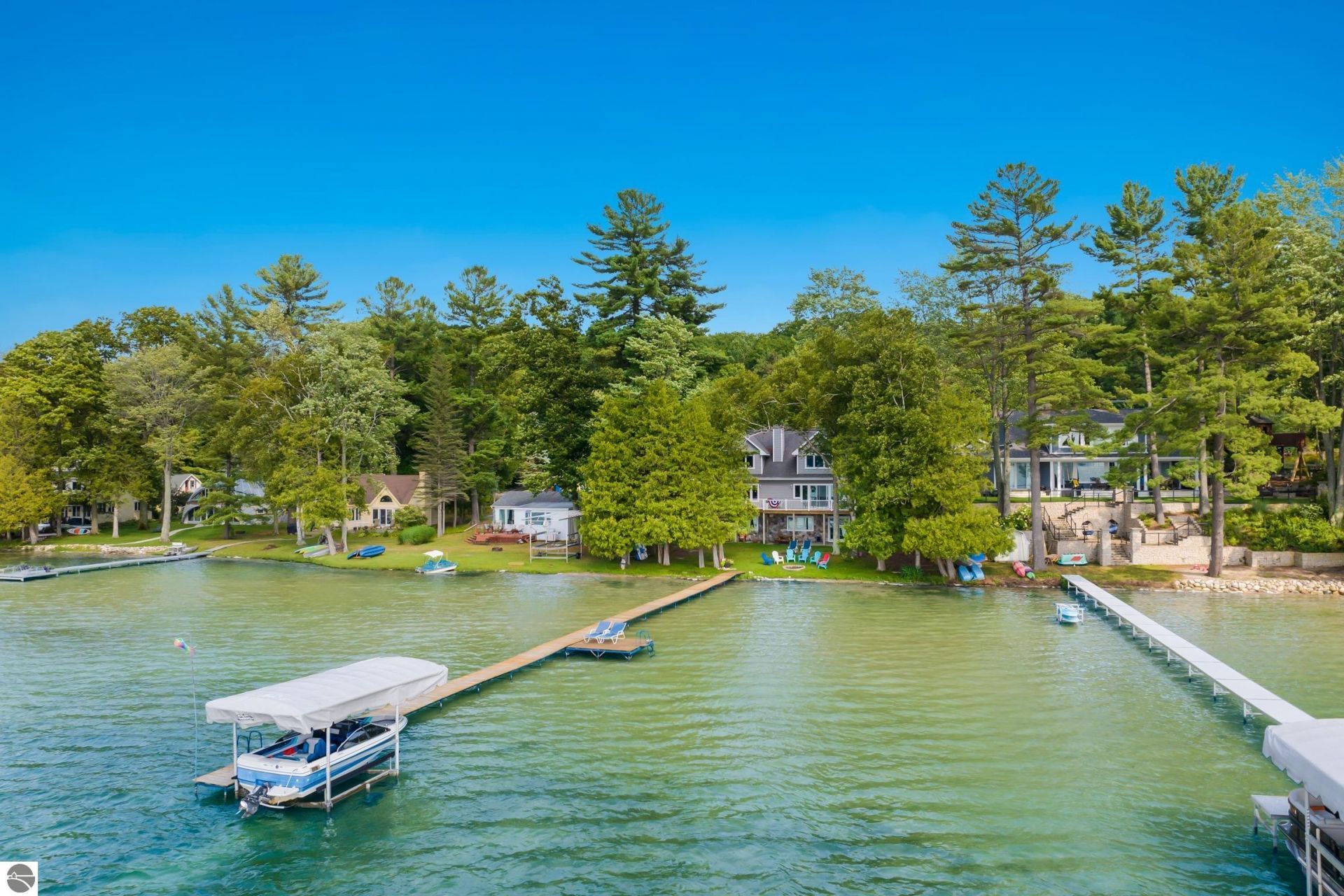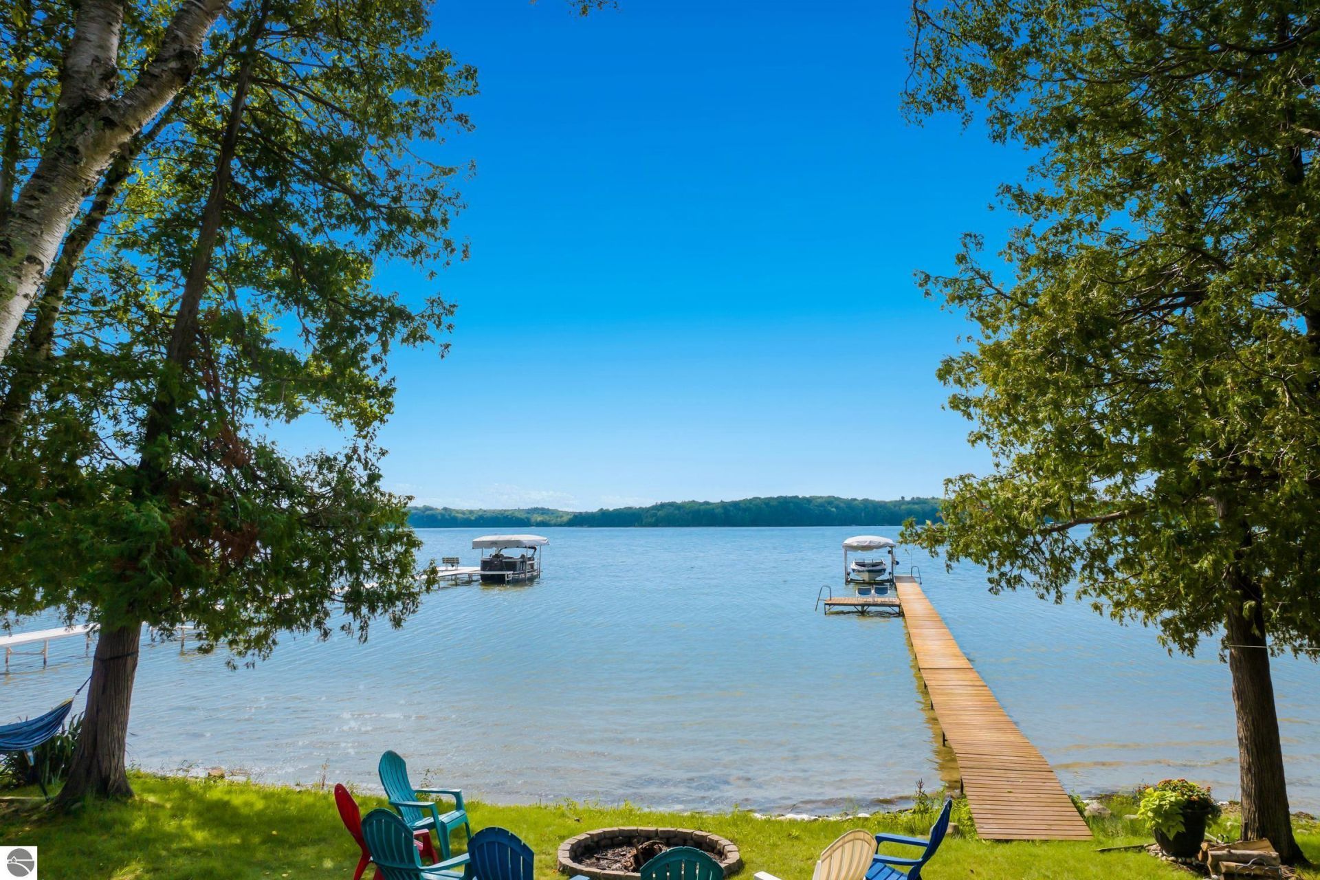 Breathtaking westerly SUNSET views & premium Lake Ann private frontage. Exceptional year around residence includes 4,173 sq ft of thoughtfully designed living space, open concept layouts on all 3 levels. 4 spacious BRS outfitted with WI closets, primary main floor master suite, 3.5 baths. Entertainer's dream kitchen invites family & guests to enjoy the huge granite island and bar - all open to dining, living, fireplace & beautiful water views. Infloor radiant heat in finished walkout lower level, includes wet bar & private office. New carpet & freshly painted in 26. Landscaped yard gently slopes to premium sandy waterfront & private dock. Finished 3 stall garage, infloor radiant heat, central vac. Easy access to TC, Leelanau CO, Interlochen Center for the Arts & National Sleeping Bear Shoreline.