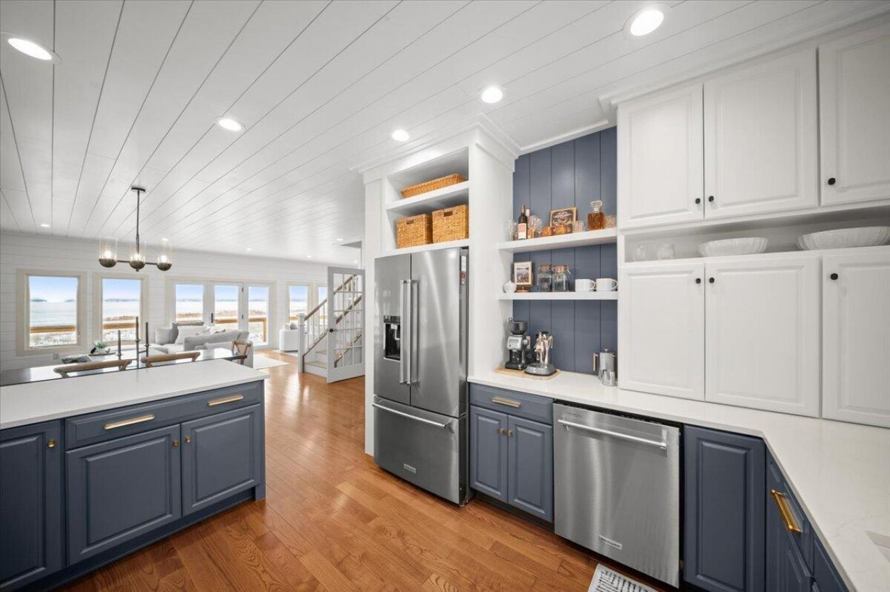 Discover a rare opportunity to own one of Portage Lakes premier waterfront homes. Built in 2006, this stunning 5 bedroom, 3 full and 2 half bath Craftsman home has recently undergone extensive renovations making this lakefront luxury property the home of your dreams. From the kitchen to the half baths and every room in between youll feel the timeless designer elegance thoughtfully instilled into every room. Enjoy panoramic views of Portage Lake from nearly every room in the home including the main floor primary suite. This home has not only been cosmetically updated with hardwood floors, custom tile showers and bathrooms, complete kitchen upgrade and so much more, but has had improvements to ensure years of low-maintenance: Architectural shingle roof, Smartsiding, new doors, windows, AC, tankless water heater and more. This fully furnished luxury home makes it easy to enjoy for years to come!