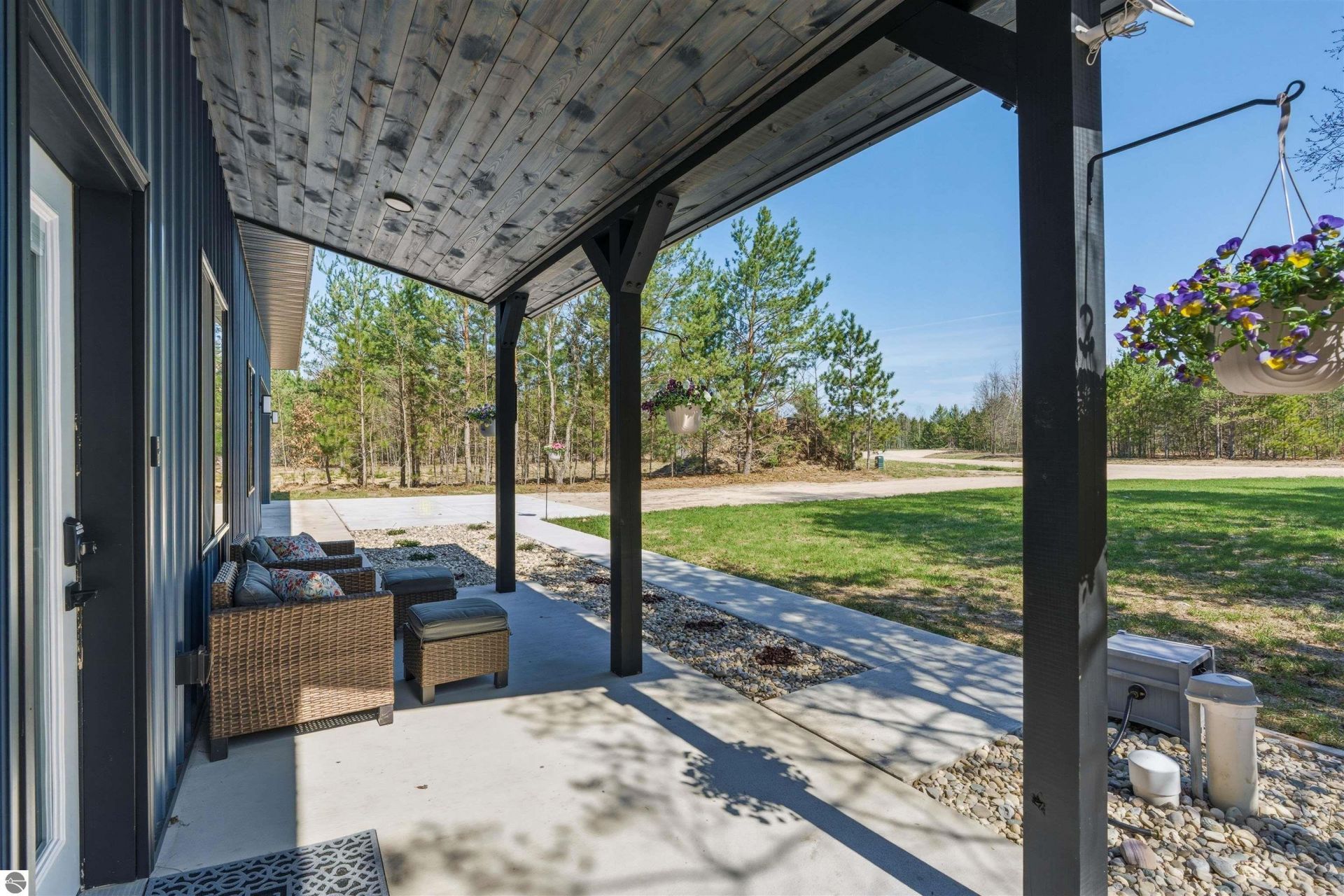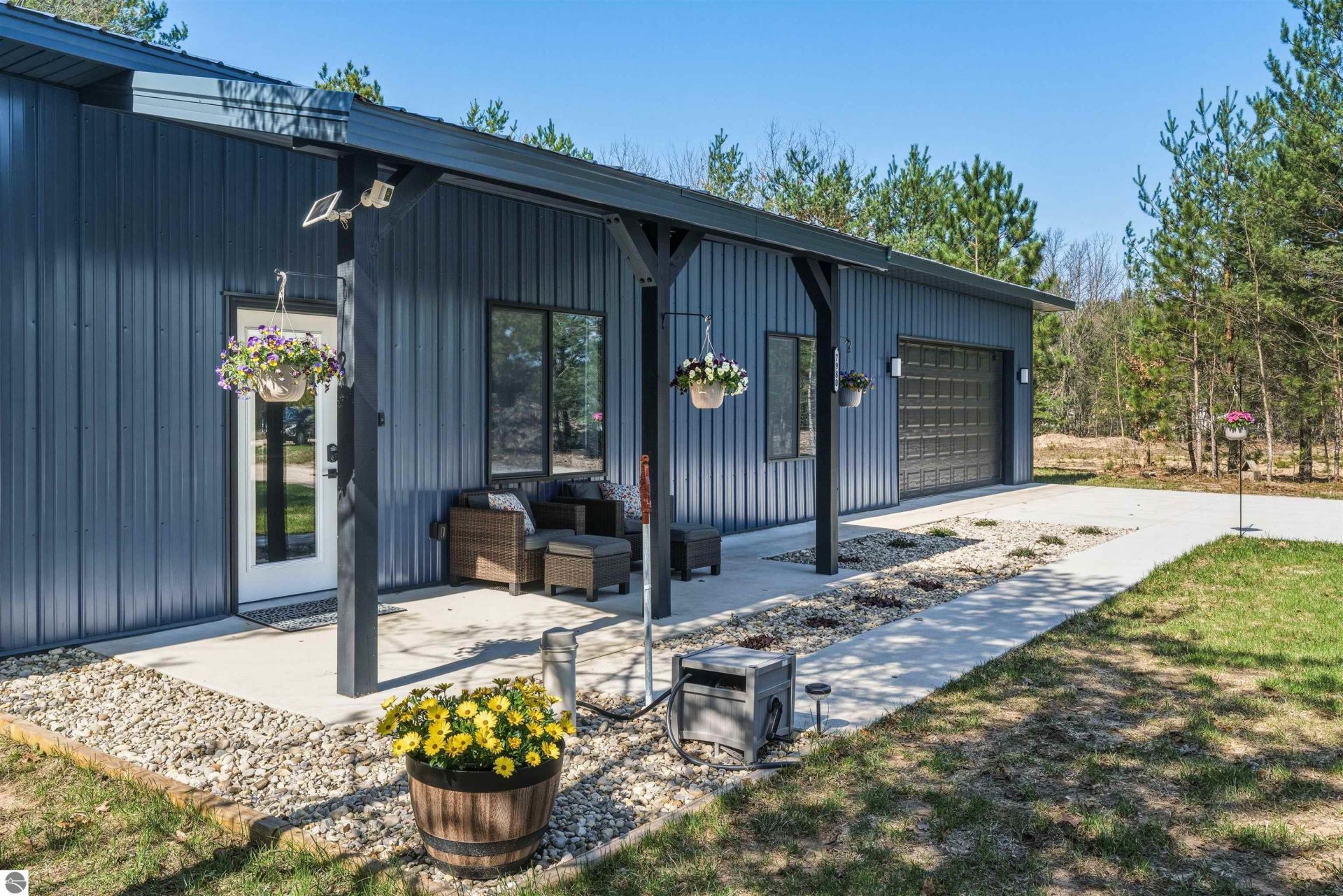 Newly built in 2024, this 1,500 sq ft home offers 3 bedrooms and 2 full baths in a peaceful wooded setting. Features include 12â?? ceilings, rounded corners, and an open-concept layout connecting the kitchen, dining, and living areas. The kitchen offers a pantry, tile backsplash, butcher block countertops, modern darker-toned fixtures, and all appliances included. Luxury vinyl flooring runs throughout, with black window frames accented by white trim. The primary suite includes a walk-in closet and full bath and is set apart from the other bedrooms, which share a second full bath. Attached two car garage is insulated and equipped with heating and cooling, offering an extra-deep 640 sq. ft. layout, a paved approach, and direct access to the home and back yard. A welcoming covered front porch offers easy entry, complemented by a patio off the dining area for convenient outdoor living. Fully electric home with mini splits for heating, electric water heater, and stove, plus cable and internet available. The property backs to vacant land owned by the local school district, offering additional privacy. Includes 30-amp RV plug with septic hookup. Located just down the road from Torch Lake and the Lower Chain of Lakes public access with nearby state land for hunting and hiking. Great location for year round activities. Quiet setting on the back side of a circle in an area of newer homes. Move-in ready.
